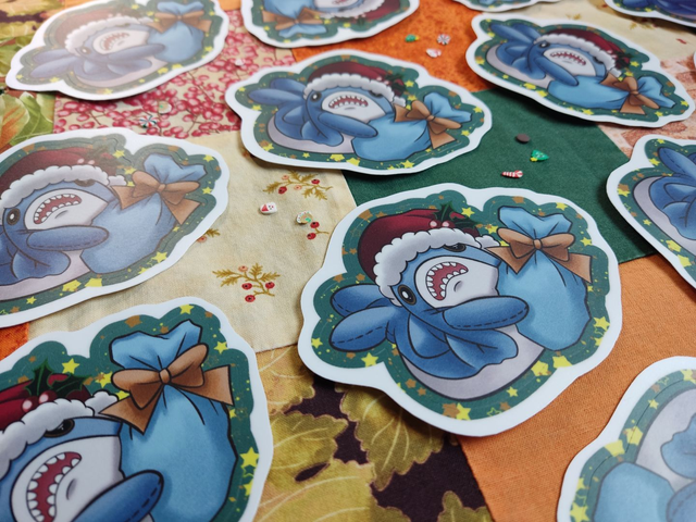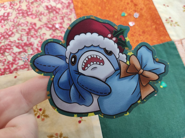 Weihnachtshai mit Geschenk - Sticker